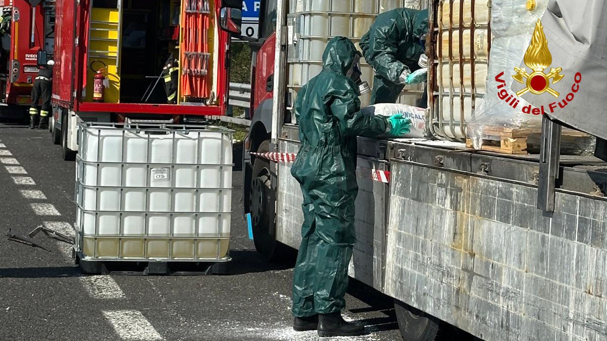 La squadra di Civitanova, con il supporto del Nucleo NBCR di Macerata, ha chiuso la falla e messo in sicurezza l’area. Successivamente è intervenuto il personale di Autostrade per l’Italia per la bonifica del manto stradale, che ha comportato la chiusura temporanea di una corsia.