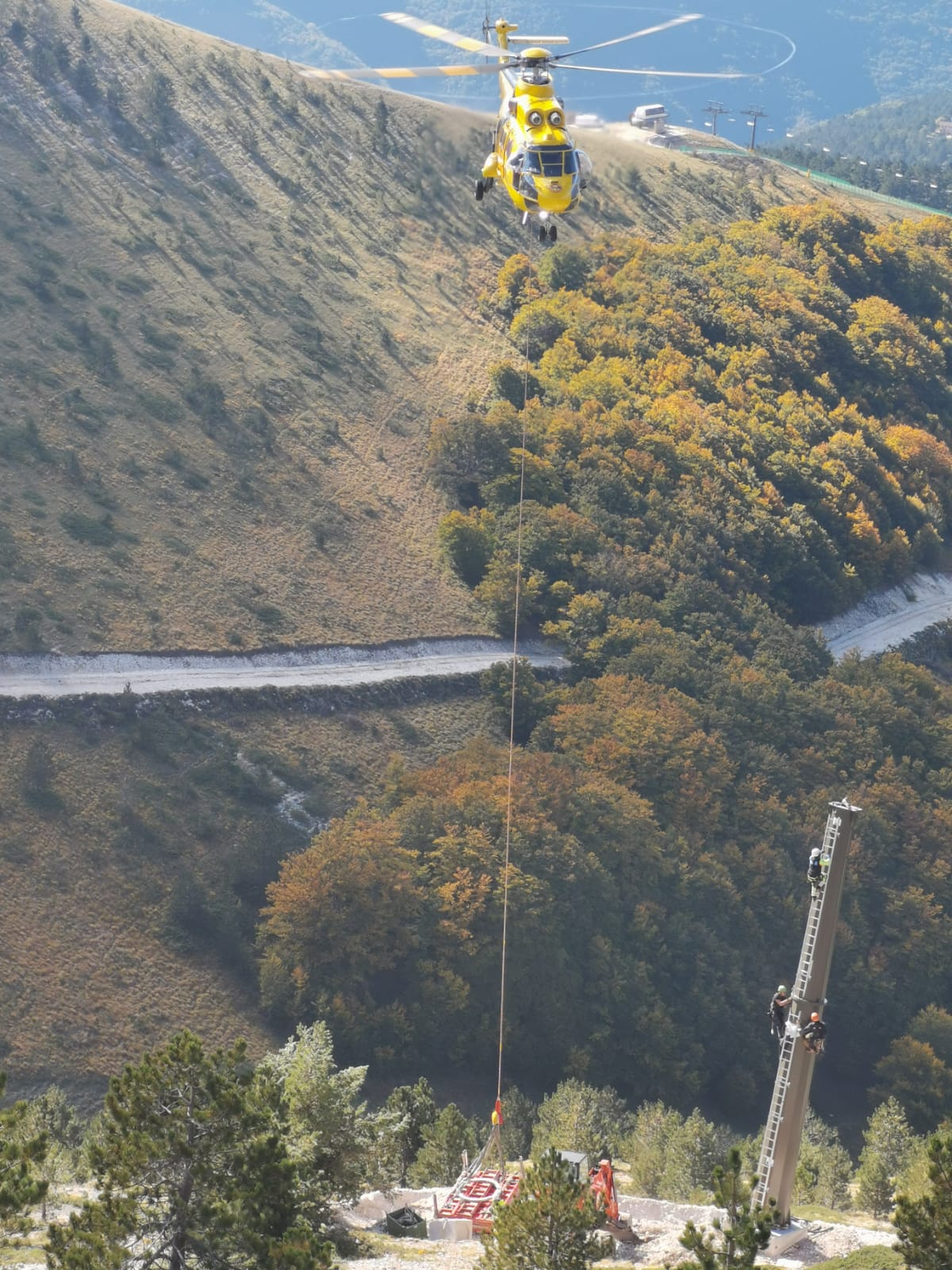 Sono stati piazzati i sostegni che sono stati trasportati con un elicottero Superpuma che nello stesso viaggio si è incaricato anche di sgombrare i rottami provenienti dallosmontaggio dei sostegni della seggiovia monoposto e biposto, dello skilift in Val di Bove, oltre ad alcuni rottami a monte della vecchia funivia, togliendoli per sempre dalla montagna. Il nuovo impianto ‘sostituisce’ le vecchie seggiovie “Selvapiana” e “Cornaccione”, a servizio del settore del Canalone e la biposto “Ginepro” a servizio del settore Saliere. Strutture ormai obsolete e non più rispondenti a criteri di compatibilità ed economicità.