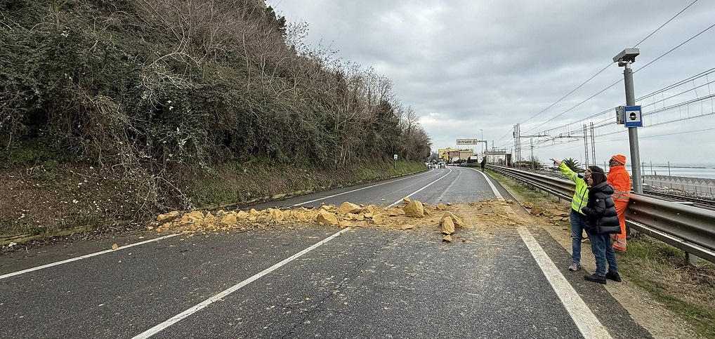 PESARO - I tecnici di Anas sono già al lavoro sulla strada statale tra Pesaro e Fano, per rimuovere i blocchi di arenaria caduti a seguito della frana di ieri, così come stanno facendo delle verifiche a monte per capire come garantire al meglio la sicurezza. L’obiettivo è riaprire la strada al doppio senso di marcia entro la giornata di oggi", almeno parzialmente. Lo ha detto il sindaco di Pesaro Andrea Biancani, a margine del sopralluogo sulla Ss16, interrotta per la frana al km 241 in zona Fosso Sejore, con l’assessora, Mila Della Dora.