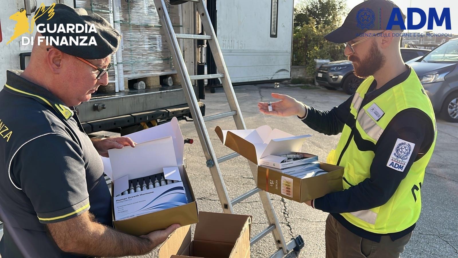 Determinante è stata l’attività di analisi preventiva basata sull’incrocio dei dati provenienti dai sistemi informatici in uso agli investigatori. In particolare, l’attenzione si è concentrata su un carico sospetto lungo la rotta commerciale Grecia–Italia–Regno Unito. L’elaborazione in tempo reale delle informazioni logistiche e commerciali ha consentito di individuare un autoarticolato appena sbarcato, ritenuto ad alto rischio e quindi sottoposto a un controllo approfondito.La successiva scansione del mezzo, effettuata tramite le apparecchiature scanner in dotazione, ha evidenziato anomalie nella densità del carico. Ciò ha spinto gli operatori ad aprire alcune confezioni per verificare il contenuto. All’interno di scatole apparentemente destinate a campioncini di integratori, è stato scoperto un ingente quantitativo di sostanze dopanti e farmaci illegali pronti per la distribuzione. Tra questi figuravano ormone della crescita (GH) e prodotti a base di testosterone, trasportati in violazione delle normative europee e nazionali.