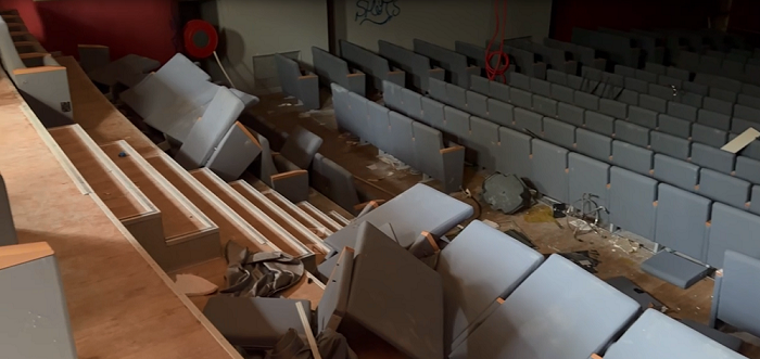Un tempo simbolo di rinascita culturale, oggi emblema del degrado urbano. L’auditorium Montevecchi, inaugurato nell’aprile del 2014 con l’ambizione di diventare un polo d’eccellenza per eventi, musica e cultura, giace oggi in uno stato di abbandono inquietante, nel cuore storico di Ascoli, alla Piazzarola, a ridosso dell’ex Mazzoni – ora sede universitaria. La struttura ricavata nell’area antistante del vecchio ospedale, quasi completamente interrato, è dotato di circa 300 posti su una superficie totale di poco meno di 500 metri quadrati con spazi dedicati ai camerini, ai servizi e alla regia, è stato utilizzato con il contagocce nel corso degli anni fino al completo abbandono. Oggi le immagini parlano da sole: porte sfondate, controsoffitti crollati, cartongesso penzolante, calcinacci ovunque. Gli impianti di condizionamento interno sono stati smontati, probabilmente saccheggiati.
