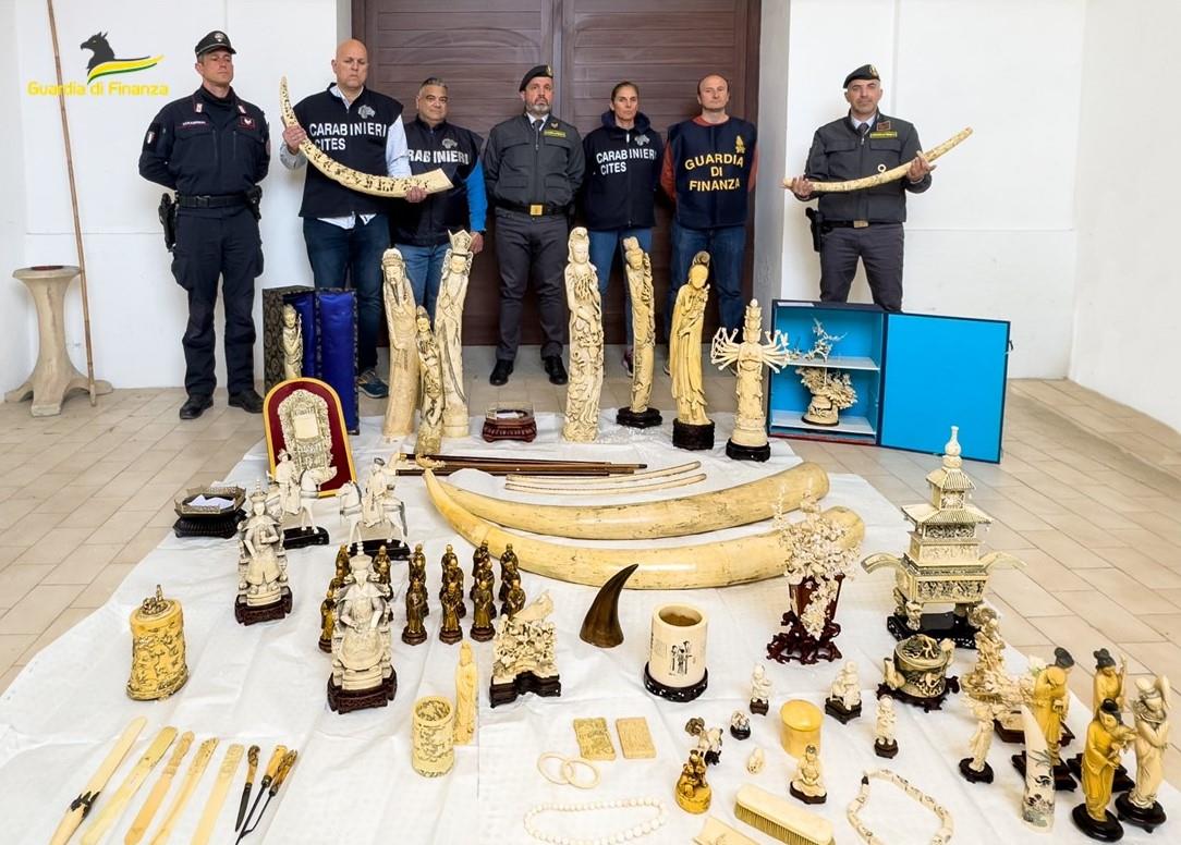 Sono stati sequestrati 80 oggetti in avorio di elefante africano (Loxodonta africana) di presunta provenienza cinese, detenuti illegalmente, oltre a due zanne grezze di elefante africano e un corno di rinoceronte nero. Il traffico illegale di parti e prodotti in avorio di elefante, nonostante la stringente normativa della CITES a cui aderiscono 183 Paesi, rimane diffuso. La caccia di frodo agli elefanti e il traffico di avorio, spinti dalla domanda asiatica, si mantengono su livelli molto elevati, come indicato dal World Wildlife Crime Report del 2020.