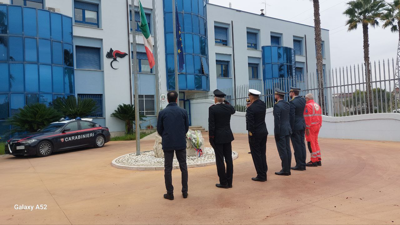 Sirene spiegate e un mazzo di fiori dinanzi la caserma dei carabinieri di San Benedetto del Tronto nel ricordo del luogotenente Marco Piffari, il carabiniere scelto Davide Bernardello e il brigadiere capo Valerio Daprà rimasti uccisi nell’esplosione avvenuta nel Veronese.