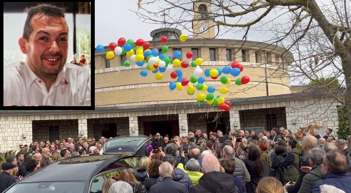 All’uscita del feretro un lunghissimo applauso e palloncini colorati a ricordare quel sorriso che si è spento a soli 48 anni.