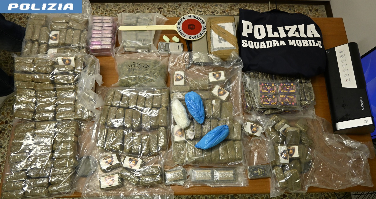 In particolare, sono stati sequestrati 23 chili di hashish suddivisi in 241 panetti, un chilo e mezzo di cocaina e circa 150 grammi di marijuana, oltre a bilancini di precisione, materiale per il confezionamento e macchinari per il sottovuoto. Secondo le stime degli inquirenti, la droga immessa sul mercato avrebbe fruttato oltre 500 mila euro.