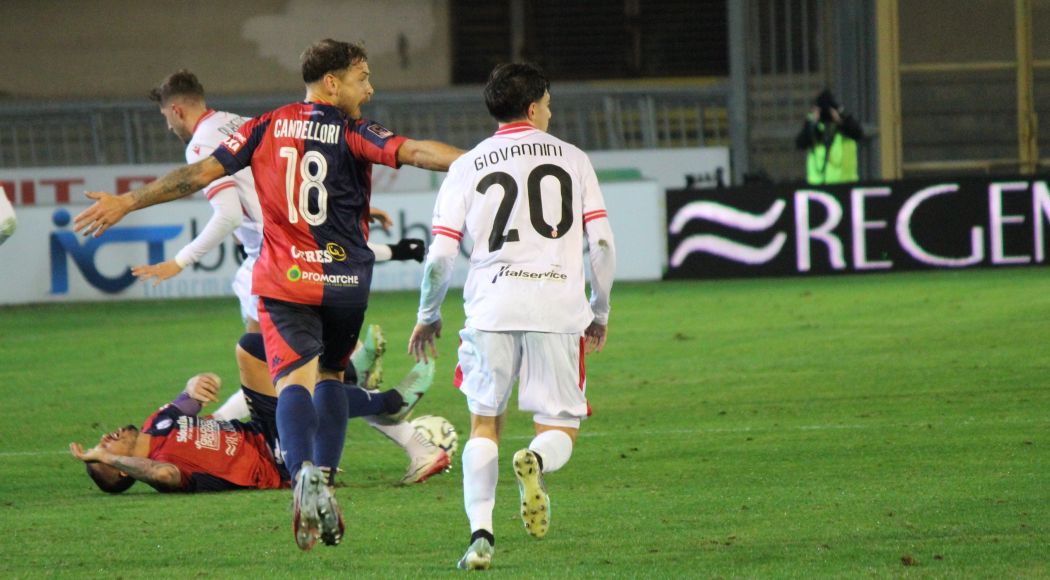 SAN BENEDETTO DEL TRONTO – Più di qualche cerotto per la Samb che domani, a Sestri Levante, sfiderà il Bra (calcio d’inizio alle 17.30). Oltre agli squalificati Battista e Alfieri (comunque in uscita), e agli infortunati Paolini (“Ne avrà ancora per un mese-un mese e mezzo” ha detto in conferenza stampa mister D’Alesio) e Tataranni, si è fermato Marranzino per un risentimento muscolare. In dubbio Candellori (nella foto), che in uno scontro di gioco con Martins (verso l’addio anche lui) si è infortunato alla caviglia.