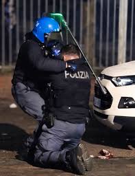 L’abruzzese Alessandro Calista, in servizio al Reparto Mobile di Padova, è stato accerchiato e brutalmente aggredito dai black bloc durante gli scontri a margine del corteo.