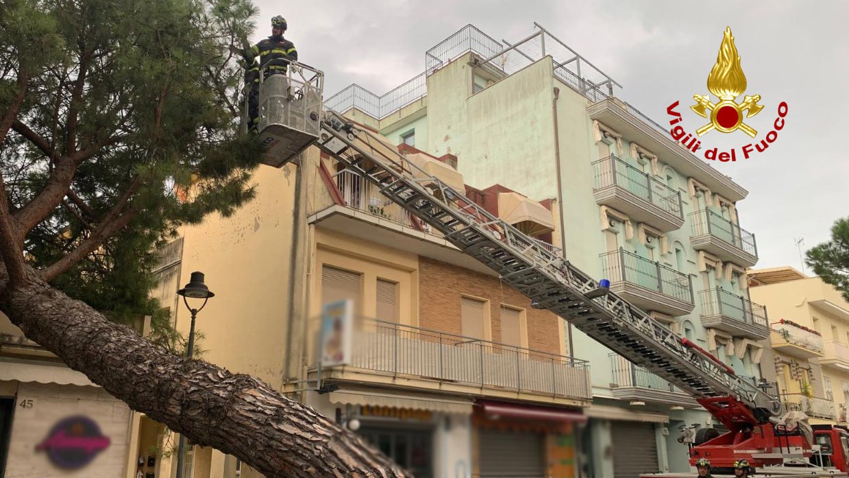 La squadra di Pesaro, con l’ausilio dell’autoscala e dell’autogru, ha tagliato e rimosso la pianta, provvedendo alla messa in sicurezza dell’area coinvolta.