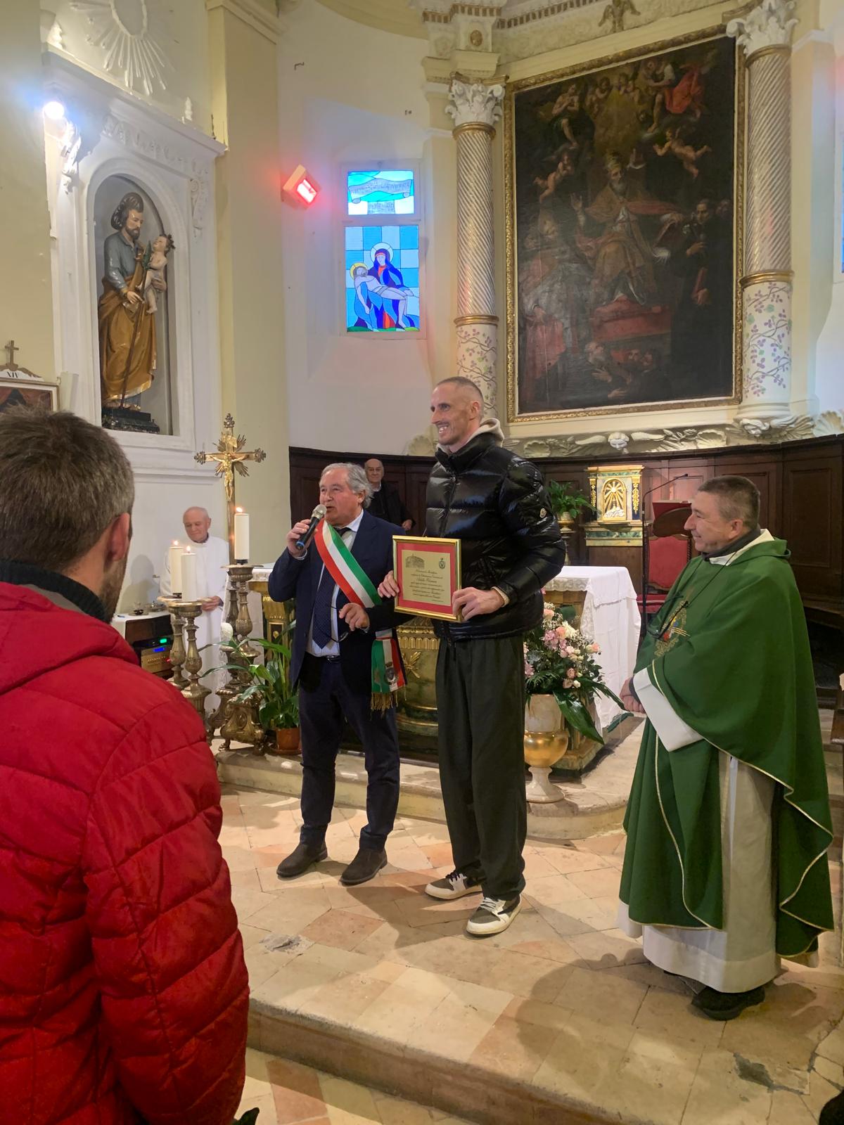 La cerimonia si è tenuta in tarda mattinata dopo la messa nella chiesa di San Gregorio Magno: "Esempio di talento, determinazione e valori autentici che onorano la nostra comunità" scrive il sindaco Marino Screpanti nelle motivazioni.