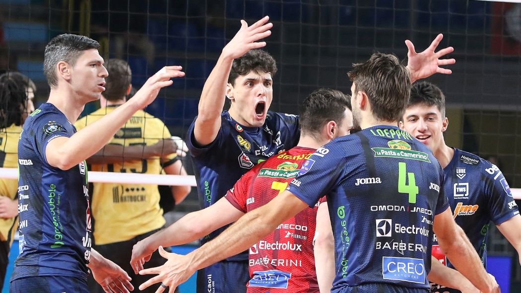 In SuperLega Credem Banca i vicecampioni d’Italia sono sesti con 35 punti all’attivo dopo la beffa al tie-break di sabato contro Modena tra le mura amiche. A due turni dal termine i biancorossi hanno 5 punti di ritardo rispetto a Piacenza, quinta forza della classifica, e sono a -6 da Modena, quarta.