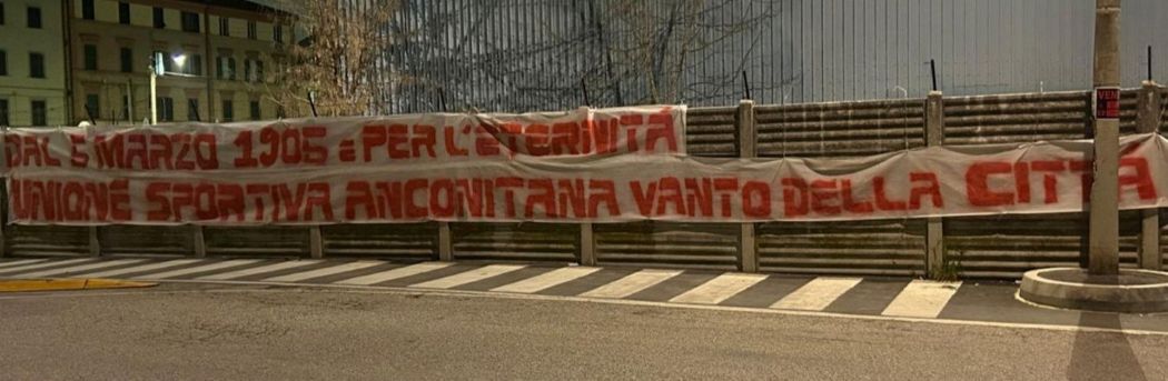 “Il primo amore non si dimentica”. “Dal 5 marzo----orgoglio dorico”. “Dal 5 marzo 1905 e per l’eternità: Unione Sportiva Anconitana vanto della città”. Nella notte sono comparsi striscioni in diversi punti della città: così i tifosi dell’Ancona hanno celebrato il 121esimo compleanno della società biancorossa.