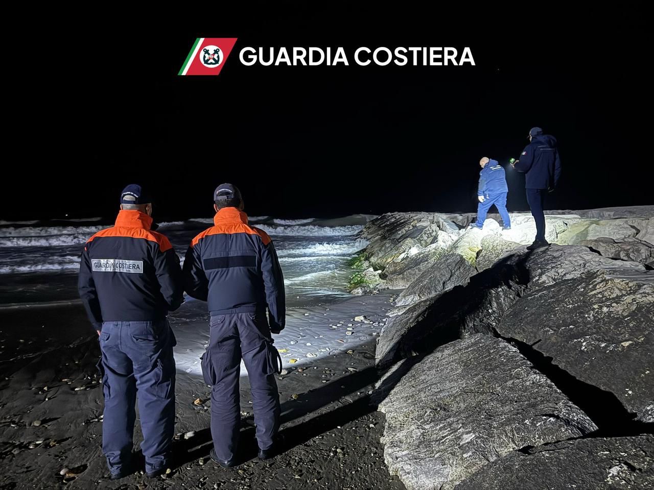 Nonostante il calare della notte, e le condizioni meteomarine in peggioramento, sono entrate in azione tre motovedette partite da Porto San Giorgio, Civitanova e San Benedetto del Tronto (Ap), da dove la Capitaneria di porto coordina le operazioni.