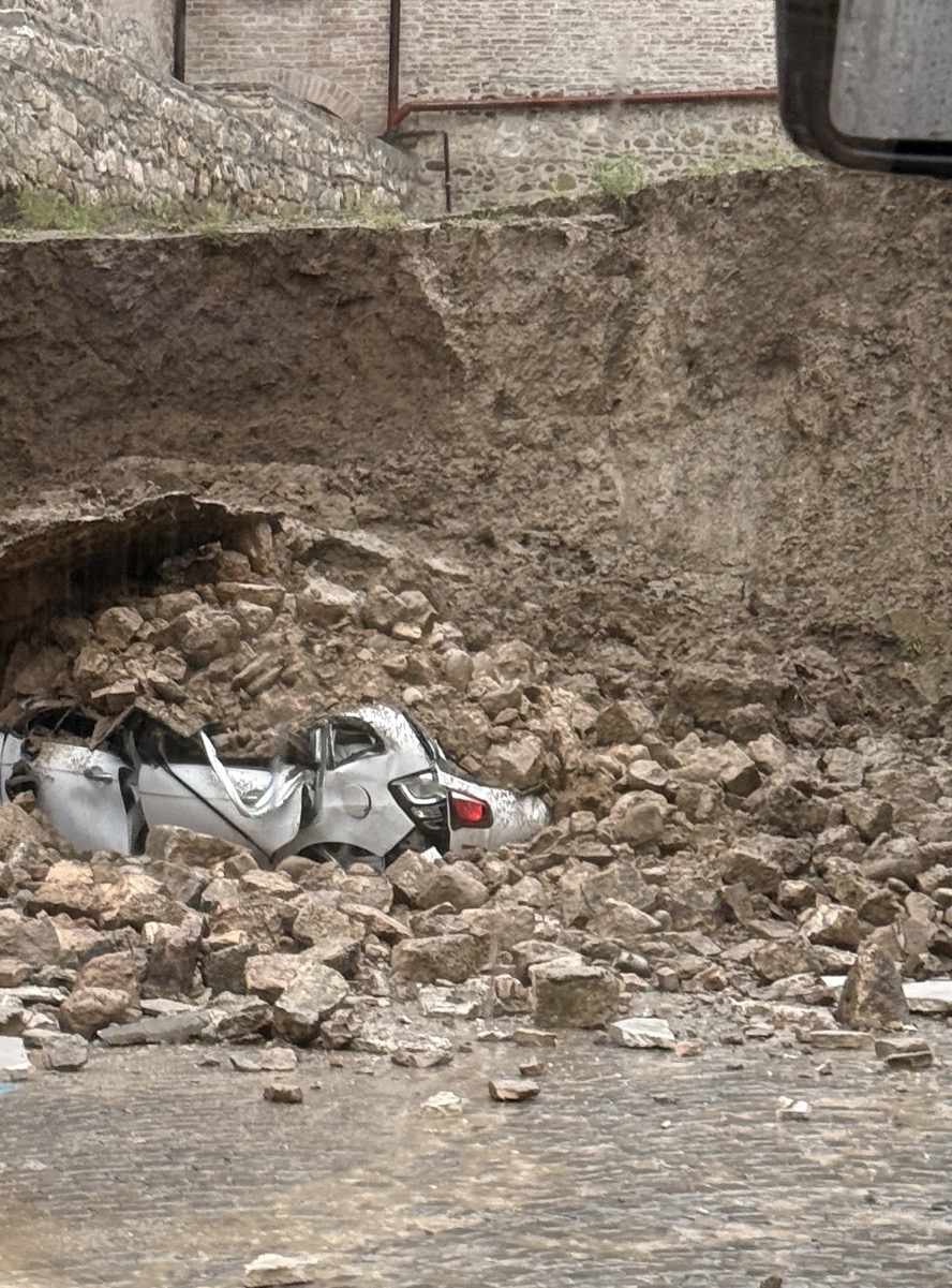 Il veicolo è stato completamente schiacciato dai detriti, ma fortunatamente al suo interno non si trovava nessuno. Non si registrano feriti, nonostante l’impatto e la consistenza della frana.