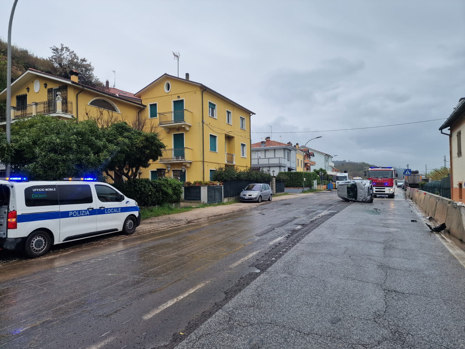 Il secondo incidente si è verificato invece intorno alle 14,45 sulla Snan, all’altezza del civico 97/A. Si è trattato di una fuoriuscita autonoma che ha coinvolto una Fiat 500X condotta da un 75enne originario di Pergola e residente a Fano. L’uomo stava percorrendo l’arteria in direzione sud-nord quando, poco prima dell’incrocio con la Strada Panoramica, ha perso il controllo del veicolo, urtando il delineatore speciale di ostacolo posizionato accanto al manufatto in cemento a protezione della pista ciclabile. Dopo l’impatto, l’auto si è ribaltata prima sul fianco sinistro e poi su quello destro, fermandosi al centro della carreggiata. Il conducente è riuscito a uscire autonomamente dall’abitacolo con l’aiuto di alcuni presenti ed è stato trasportato in codice giallo al pronto soccorso di Fano. Sul posto sono intervenuti la Polizia Locale per i rilievi e i Vigili del fuoco per la messa in sicurezza del mezzo.
