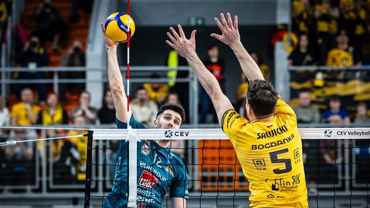 Nel primo set a fare la differenza per i polacchi è la battuta (7 ace a 2, quattro di Leon, autore di 7 sigilli). Lo schiacciatore ex Sir si presenta con un ace (5-2), Civitanova cresce a muro e impatta su un errore ospite (7-7), l’ace di Bottolo vale il sorpasso (8-9). Il team di casa colpisce dai nove metri con Mc Carthy e altre tre volte con Leon (15-11) confezionando un parziale di 7 a 2. Civitanova sembra risalire (16-14), ma i polacchi tirano a tutto braccio come sull’ace di Sawicki (20-15). Medei inserisce Nikolov per Loeppky. I cucinieri vanno a segno con il servizio di Bottolo (20-17). Sul settimo ace nel set, il quarto di Leon, il Lublin va sul 24-19 e chiude al secondo set point (25-20).
